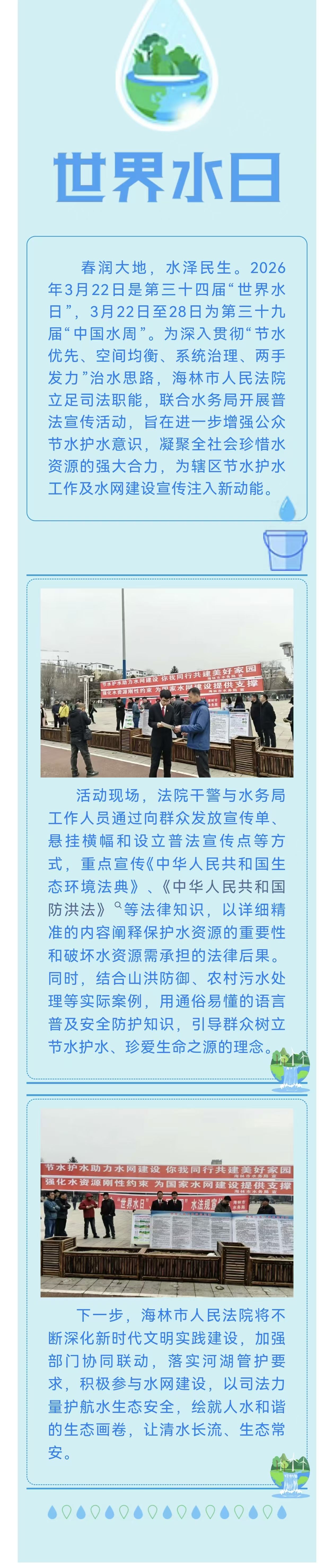 【普法宣传】法润清泉 守护碧水——海林市人民法院联合水务局开展“世界水日”普法宣传活动